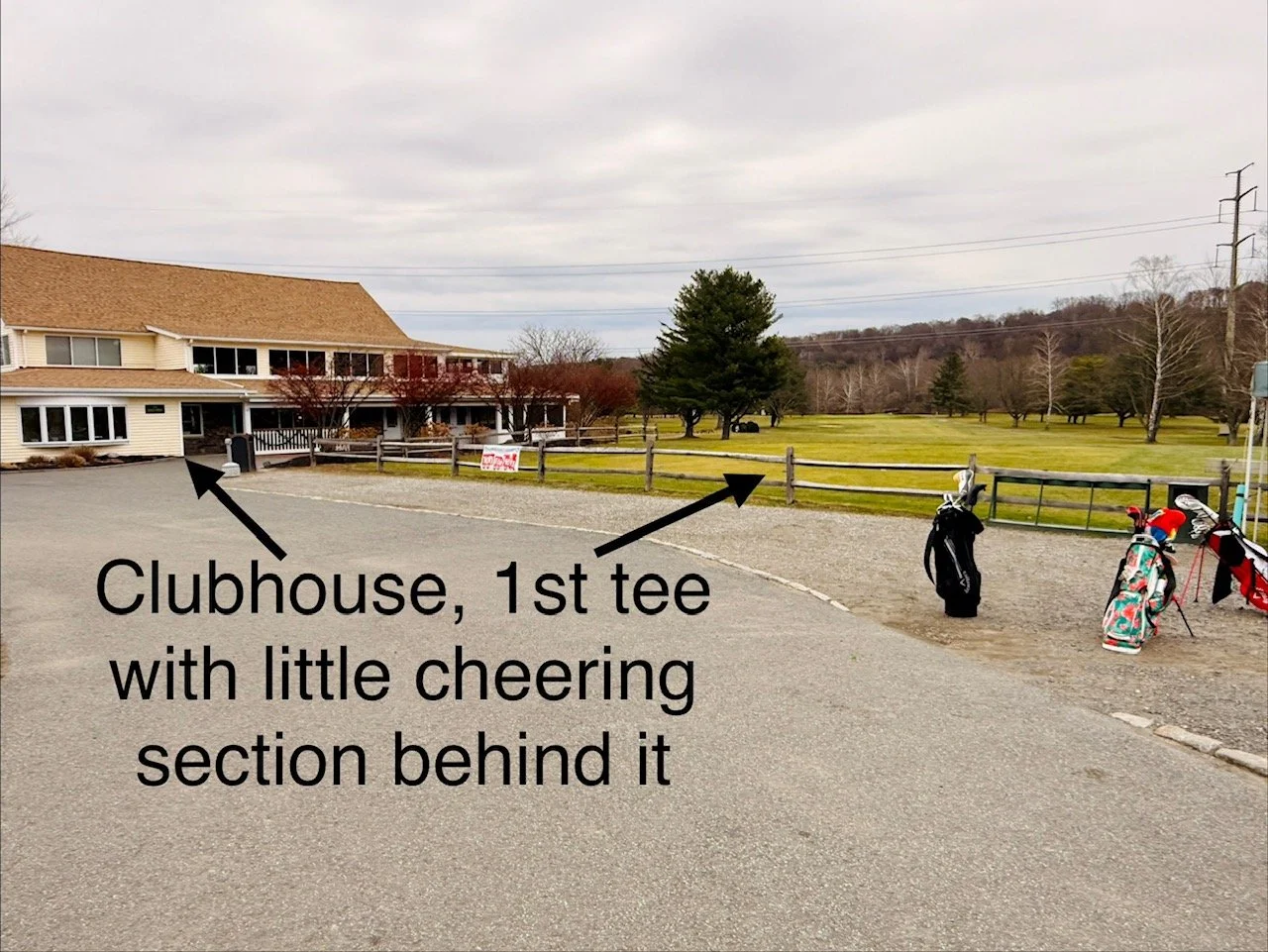 - There is a sort of charmingly dated clubhouse with a little bar area, pro shop, bathrooms, etc. There is a small “cheering section” behind the first tee and both a driving range and practice green.